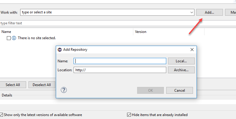 code-insight-eclipse-scanfolder from theCodeInsight``version``Plugins.zipfile and have placed it in a location accessible to your environment. For more information, see Downloading Plugins. - Open Eclipse, and select Help | Install New Software .