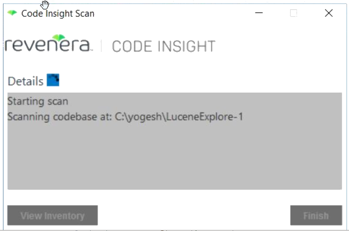 - Click Finish to close the Code Insight scan window.