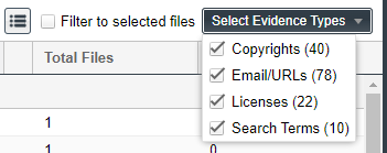 - Show only specific categories of evidence—From the Select Evidence Types dropdown list at the top of the Evidence Details tab, select the categories you want to display.