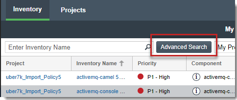 - From the Advanced Search dialog, select Inventory with Open Alerts (located in the Inventory Notifications section), and click Apply .